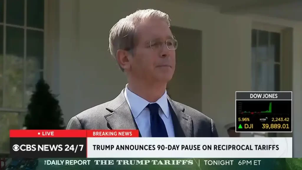 当地时间9日下午,贝森特就特朗普宣布暂缓实施部分“对等关税”接受媒体采访 CBS报道截图