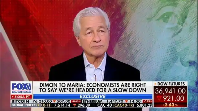 当地时间9日上午,戴蒙接受福克斯新闻台商业频道采访节目截图