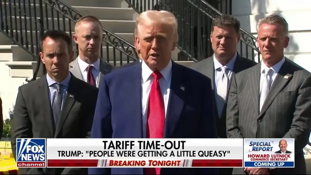 当地时间9日下午,特朗普宣布对部分国家暂缓征收“对等关税”90天 福克斯新闻台截图