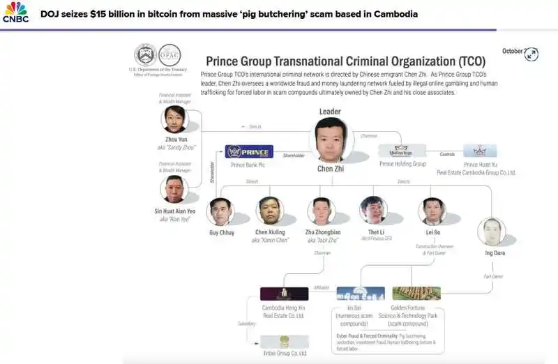 据美国财经媒体CNBC10月15日报道,美国执法部门破获柬埔寨大规模“杀猪盘”骗局,扣押了幕后主谋持有的127271枚比特币,总价值约150亿美元。这是美国司法部史上最大规模的查没行动。