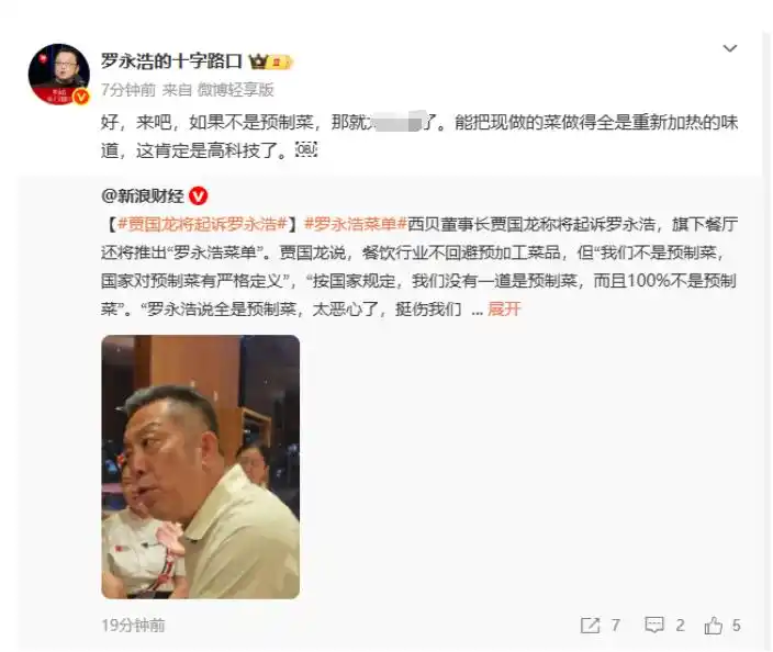 罗永浩回应:好,来吧。能把现做的菜做得全是重新加热的味道,这肯定是高科技了。
