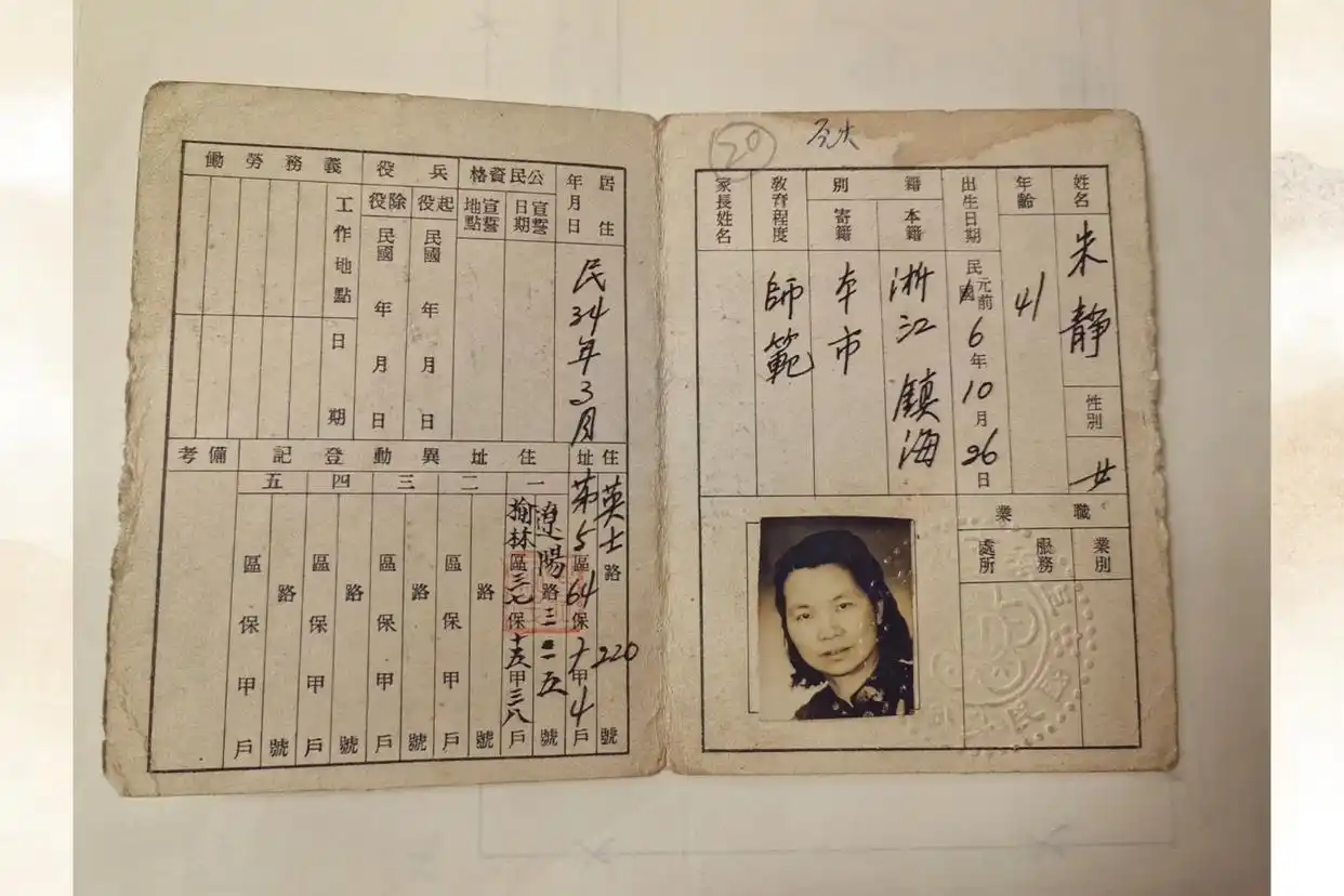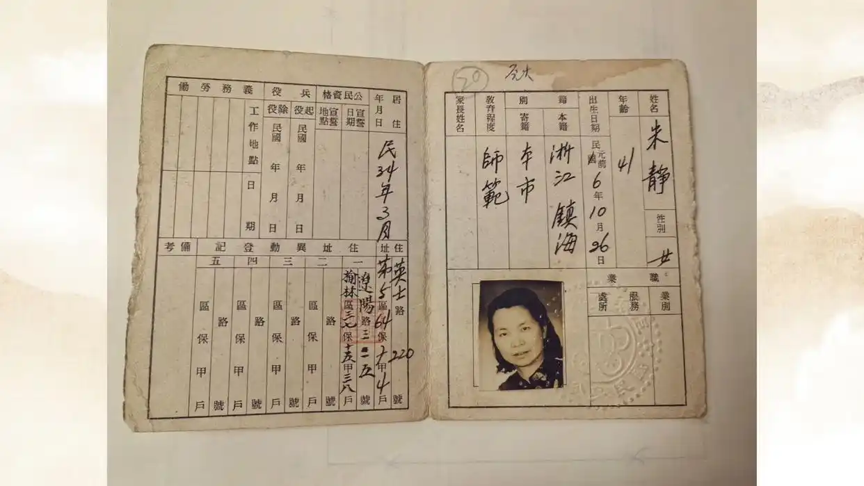 直播现场,朱枫孙女朱容瑢戴上白手套,小心翼翼展示了朱枫的一份上海身份证:标注“民国34年”,姓名“朱静”,此身份证为家人首次向社会公开。当时朱枫以此名应对日伪检查,在上海通过同丰商行等从事地下工作。