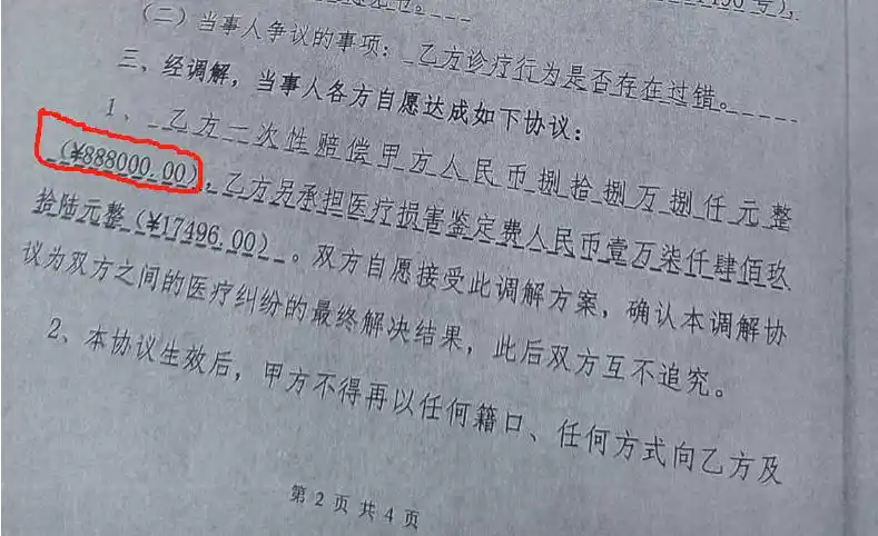 “我这才知道,5月17日邓某便在医调委,与南海第七医院签订了《调解协议书》,上面有写赔偿金额88.8万元。”韦先生说,5月23日前后,邓某让他签《承诺书》,系因为赔偿款到账了,但《承诺书》却没有写具体赔偿金额,“我认为他故意隐藏了该信息。”