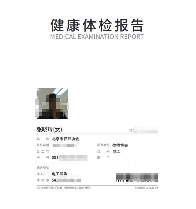 7 月 16 日晚,潇湘晨报记者联系到了张晓玲,据其介绍,作为北京律协会员,她长年享有北京律协为每位律师购买的体检服务。从 2013 年至 2023 年,她连续 10 年在爱康国宾体检设于北京的分院进行体检。2022 年之前的体检,她的双肾的体检结果一直都是 ” 未见明显异常 “。