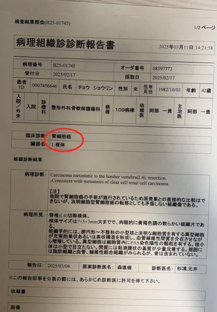 △ 2025 年 2 月,张晓玲在国外检查,被确诊为 ” 肾癌骨转移。