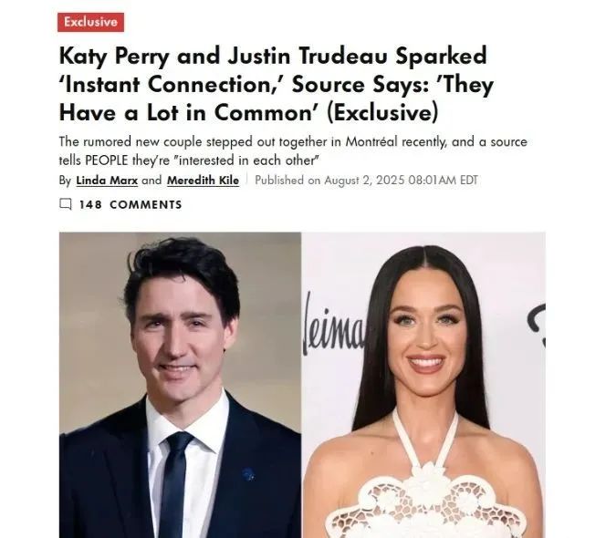 据《people》,水果姐Katy Perry和加拿大前总理特鲁多在蒙特利尔多次外出,引发恋情传闻,两人是一见钟情,他们有很多共同点。知情人士表示:“他们对彼此都很感兴趣,但还需要一段时间才能看到进展。她正在巡演,而他现在已经不再是加拿大总理,正在摸索自己的生活,但他们之间还是有吸引力的。” “音乐是他们众多共同点之一,乐观主义是另一个共同点。”