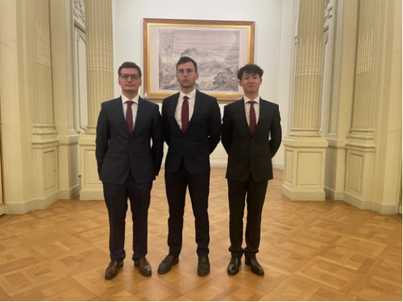 ↑士杰、马库斯、钟灏松三人在中国驻法大使馆合影。(从左至右)