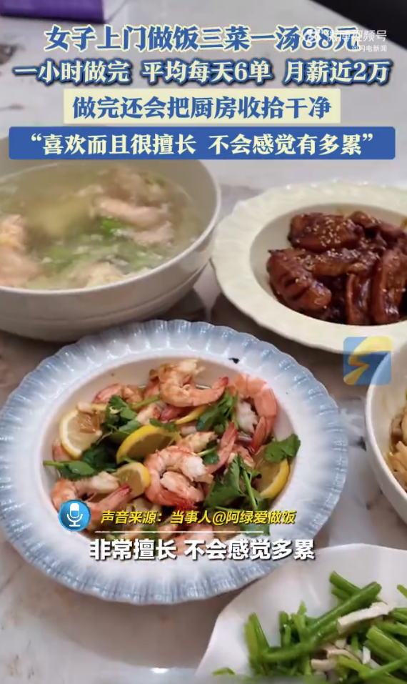 88元三菜一汤真能月入近2万?女子接6单日赚528元遭质疑