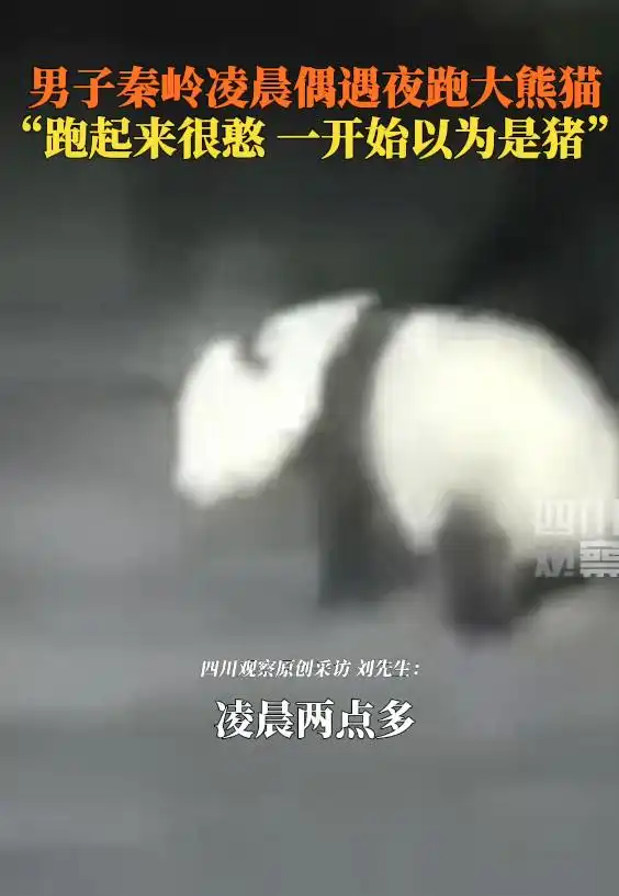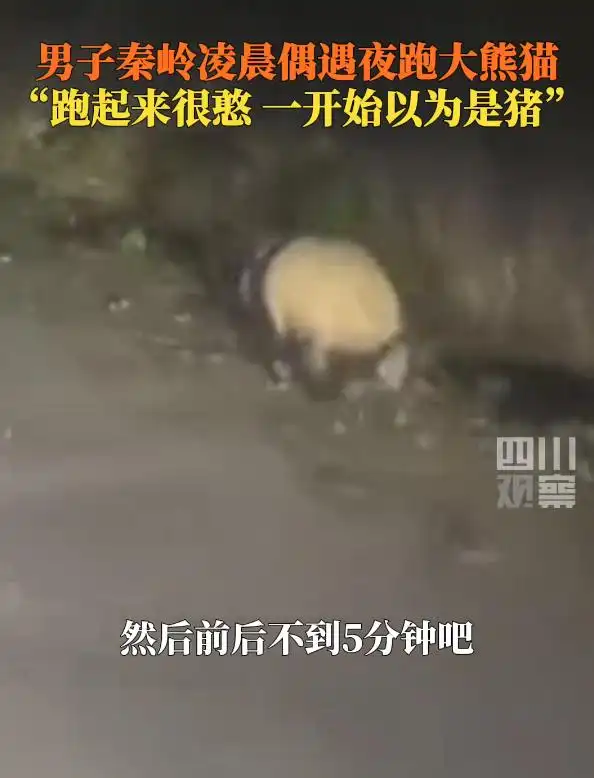 5月18日(采访) ,陕西宝鸡。男子凌晨偶遇夜跑野生大熊猫 :跑起来憨憨的以为是猪。
