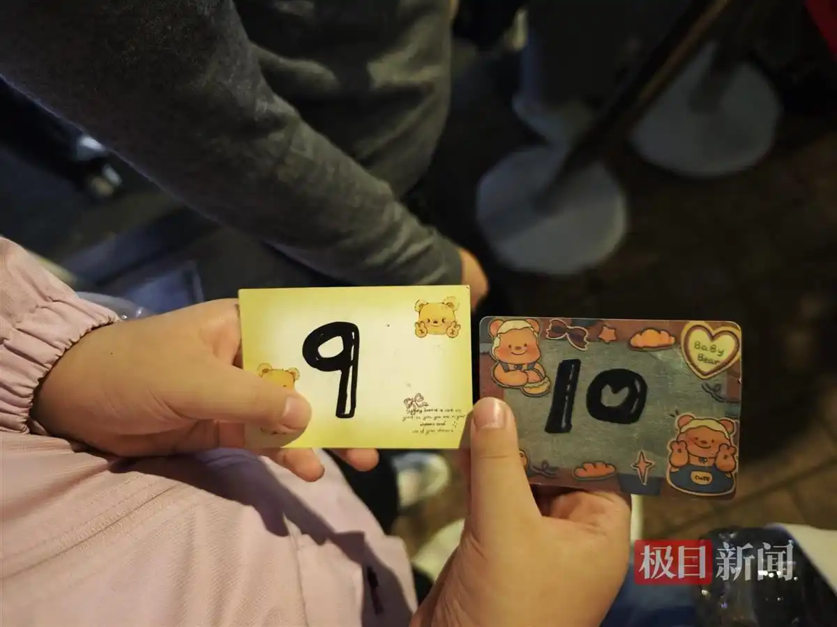 在等待约5小时后,市民李女士和女儿成功拿到了二人的卡通煎饼。李女士告诉极目新闻记者,她在下午两点就到了现场,才取到靠前的号。