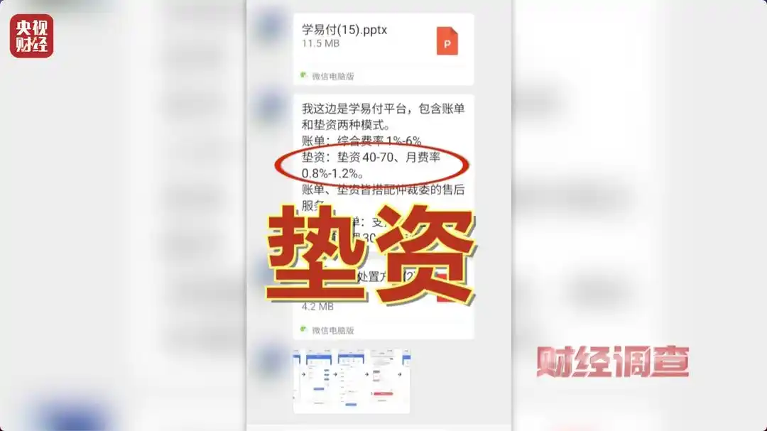 记者来到学易付(山东)信息科技有限公司,公司的李经理告诉记者,“学易付”就是兼职转培训生意里,帮助兼职人员办理培训费分期支付业务的公司。学易付公司会提前将一定比例的培训费直接打给兼职公司,进行“垫资”,让这些兼职公司省去了后面再按月分期收取培训费的流程,迅速套取大量资金。
