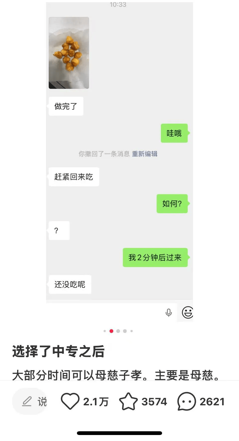 博主说,选择了中专后,家里大部分时间都是“母慈子孝”。