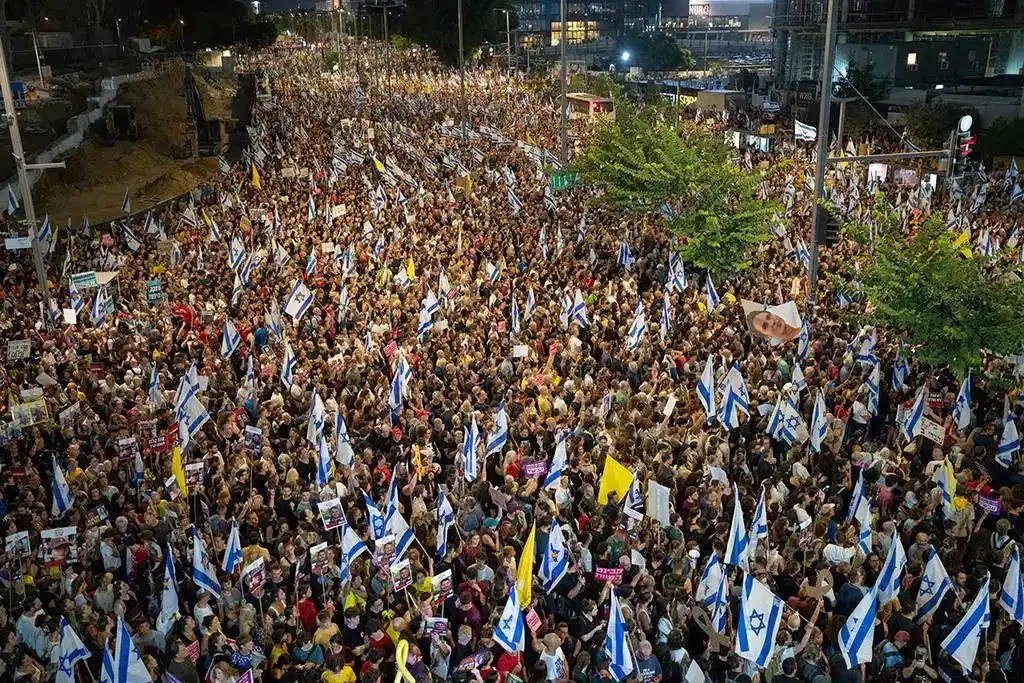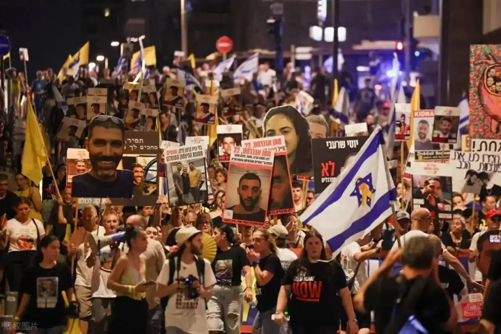 8月17日的以色列街头,人潮如海,声浪震天。从特拉维夫的海滨大道到耶路撒冷的议会门前,从北部港口城市海法到南部沙漠小镇迪莫纳,近百万民众挥舞着黑白相间的”带他们回家”标语牌,高呼”停止战争””立即换俘”的口号。这场自去年10月巴以冲突爆发以来规模最大的示威活动,正在以前所未有的公民力量冲击着内塔尼亚胡政府的战时决策。